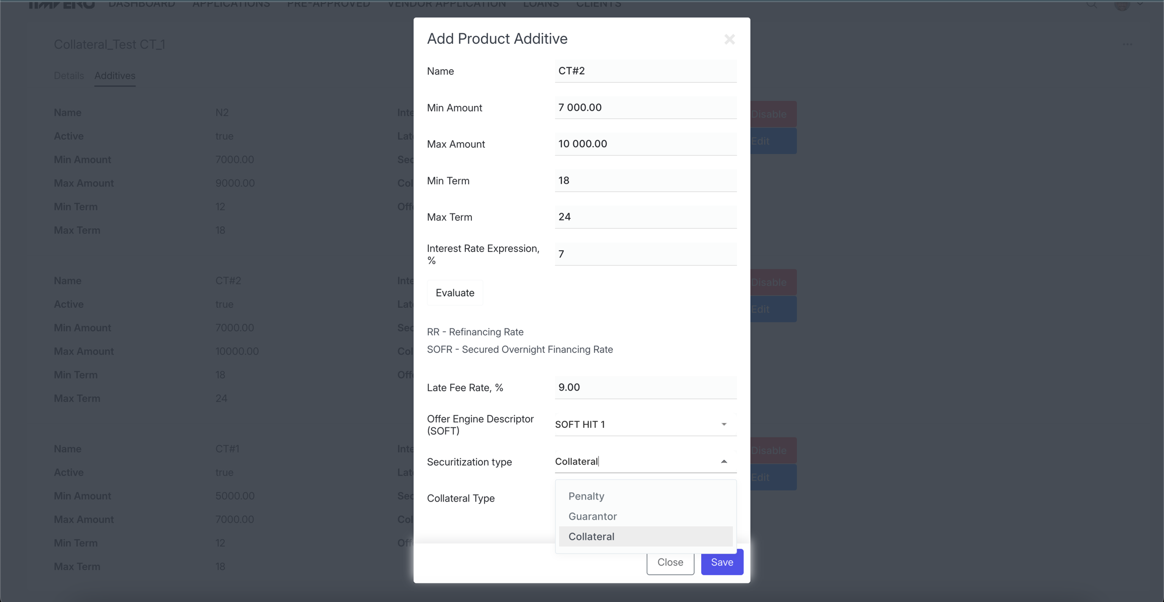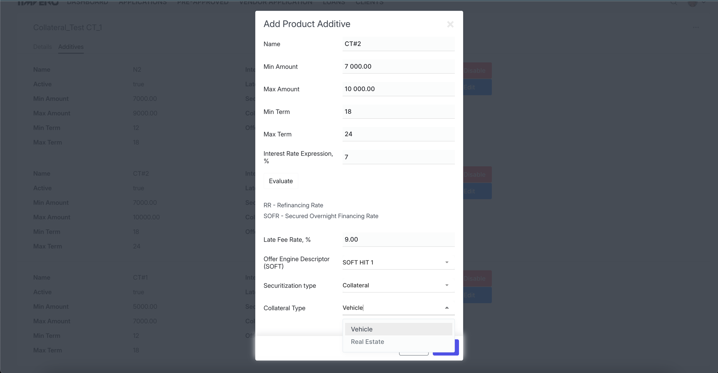 timveroOS offers clients a comprehensive solution for Collateral Management. Our platform allows clients to add collateral requirements to Additives, ensuring seamless customization and flexibility: