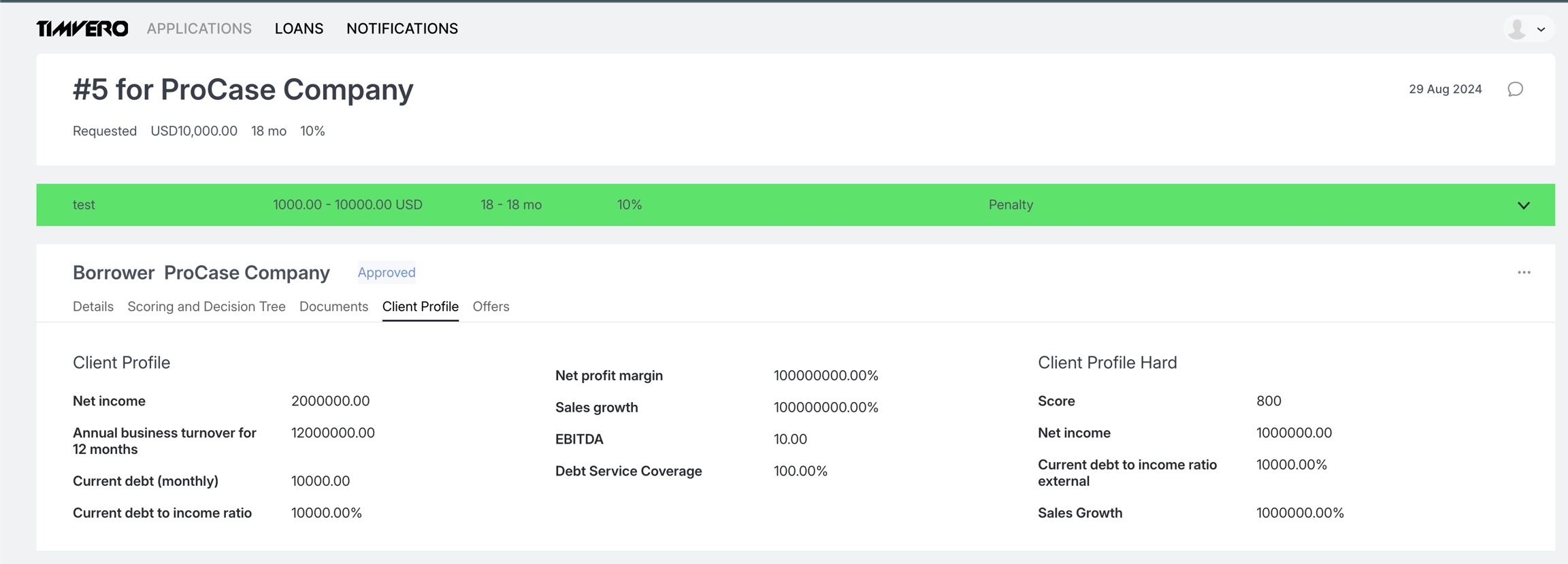 The outcomes from the execution are saved in the Client Profile section, and later can be used as variables for pricing tool, product segmentation, documents and more: