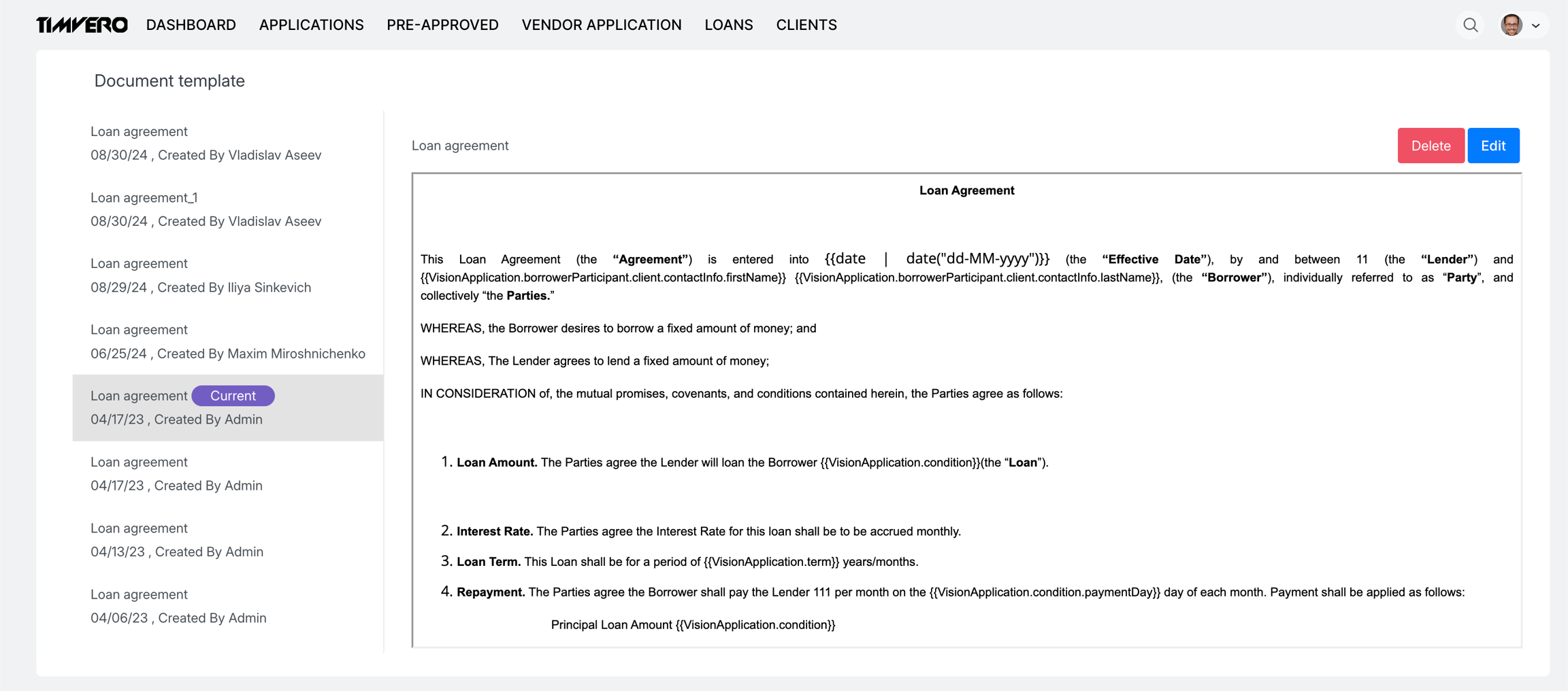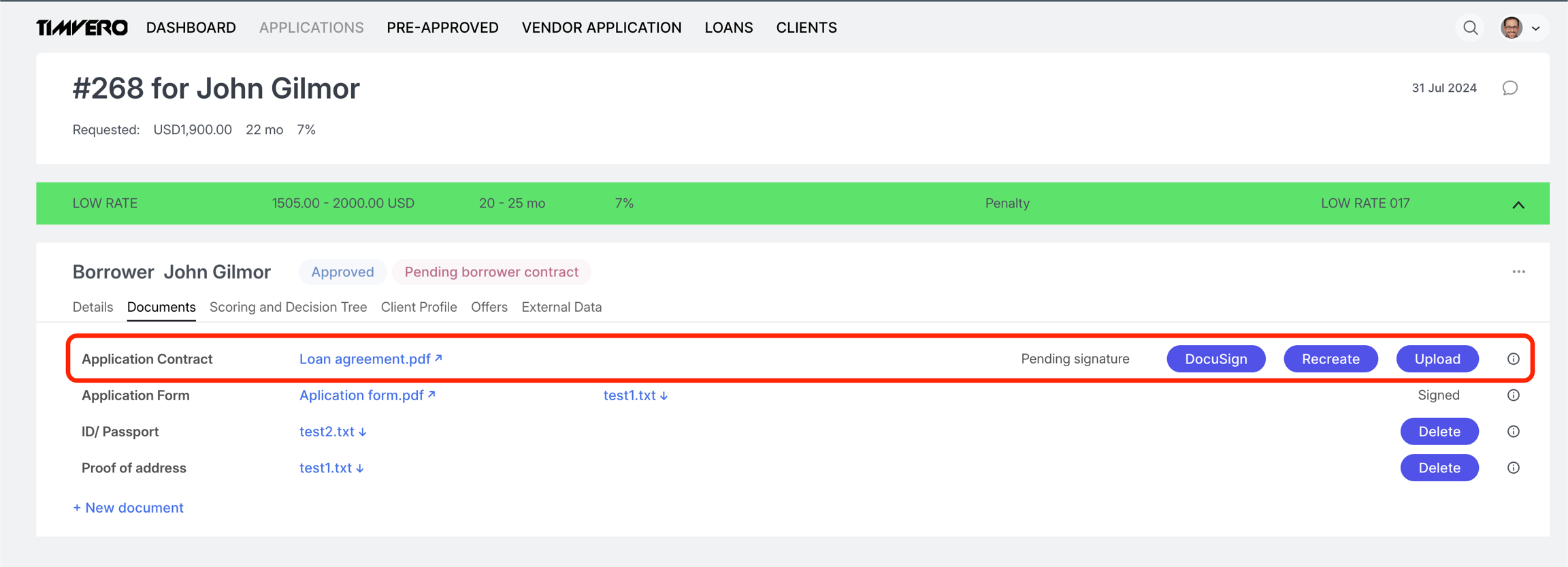 timveroOS can also automate document generation based on specific events within the system, tailored to the needs of Financial Institutions (FIs). For example, an application form can be automatically generated and made available immediately after a user completes and saves the data entry process.